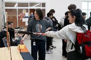 After learning that more than 30 industry professionals would be coming, the Navigators mapped out spots for tables in three sections of the focus program’s building. They designed and placed promotional posters for Rock the Trades throughout the school, and they assisted companies with their needs during the event. They helped them set up booths that included business-related materials, virtual reality equipment and large and small electrical items.