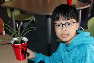 Ava was also excited to receive her houseplant in the library. She drew several hearts on her cup after deciding to call it Lily.